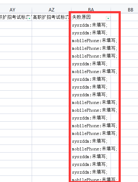 (6)下载失败表后,请按照最后一列“失败原因”中的提升,进行更正,更正后再次上传,直至全部上传成功。