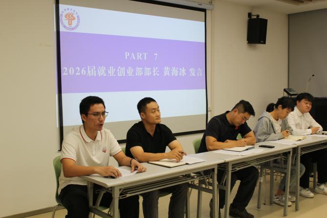 在随后的发言环节中,新一届学生干部代表黄海冰在发言中热烈欢迎新助理加入,并表示未来将与全体成员一道,共同建设好就业指导中心这个服务师生的平台。